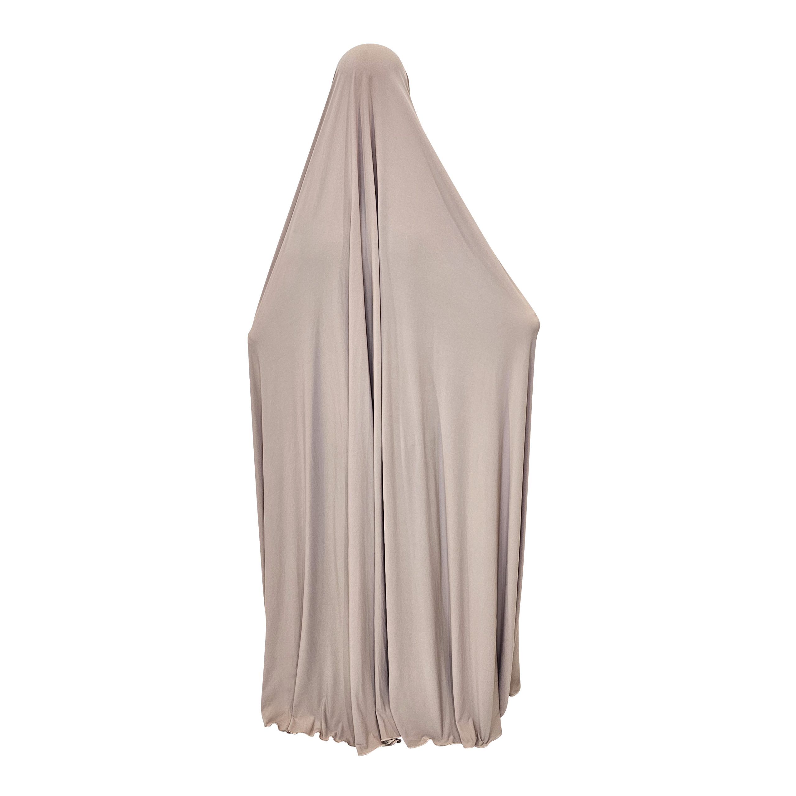 The Dusty Nude Premium Plus Size/ Maternity Maxi Muslim Prayer Jilbabs come in a one size fits all.